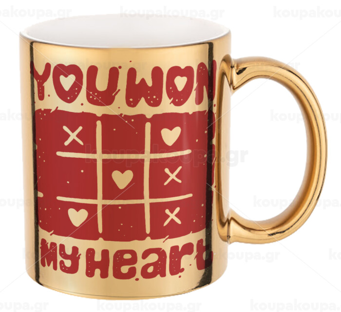 Τρίλιζα you won my heart, Mug ceramic, gold mirror, 330ml