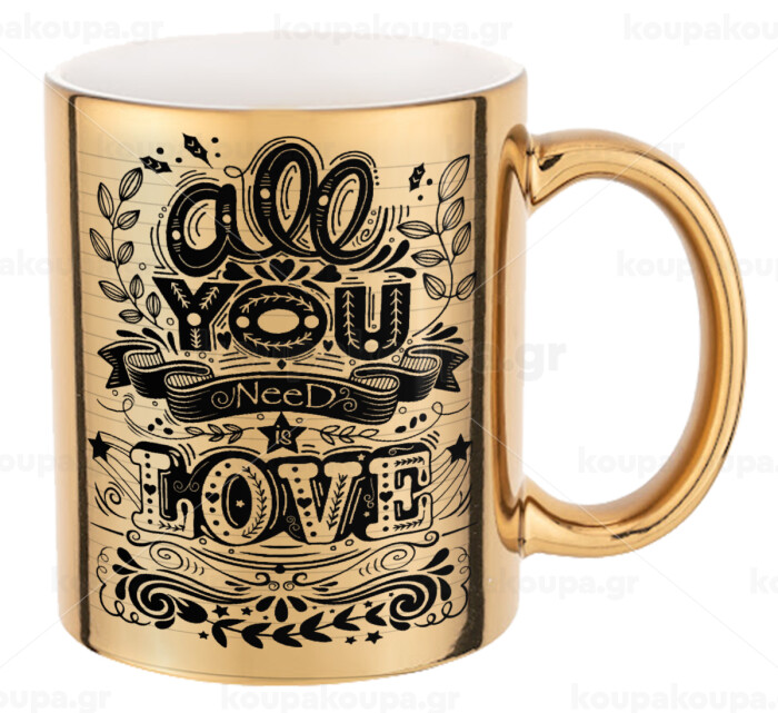 All you need is love, Mug ceramic, gold mirror, 330ml