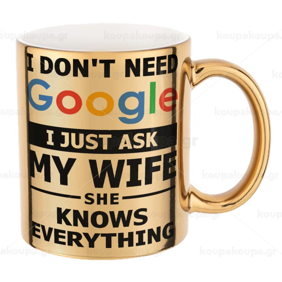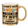 I don't need Google, just ask my WIFE, Mug ceramic, gold mirror, 330ml