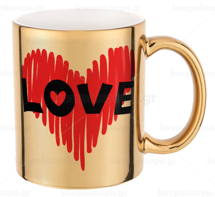 I Love You red heart, Mug ceramic, gold mirror, 330ml