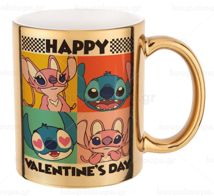 Lilo & Stitch Happy valentines day, Mug ceramic, gold mirror, 330ml