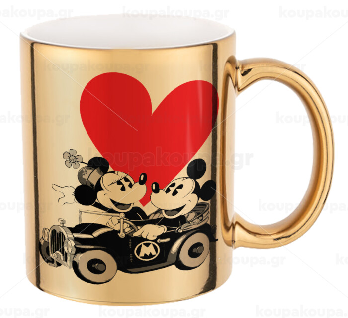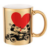 Mickey & Minnie love car, Mug ceramic, gold mirror, 330ml