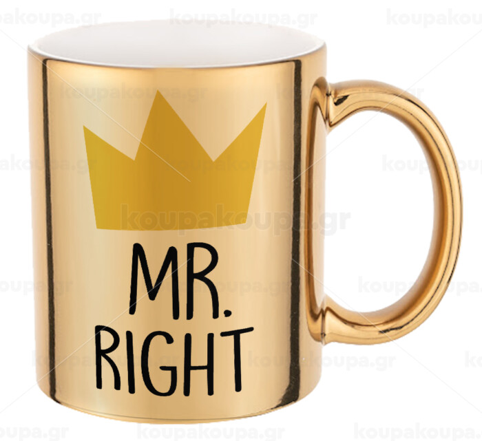 Mr right, Mug ceramic, gold mirror, 330ml