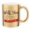 Will you be my Valentine???, Mug ceramic, gold mirror, 330ml