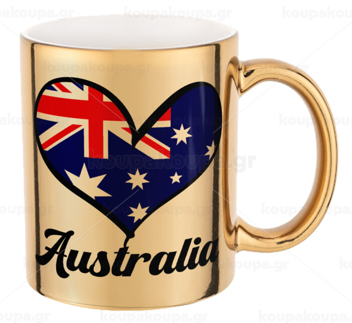 Australia flag, Mug ceramic, gold mirror, 330ml