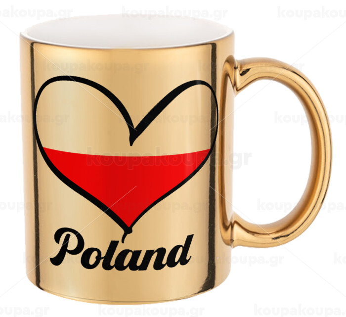 Poland flag, Mug ceramic, gold mirror, 330ml