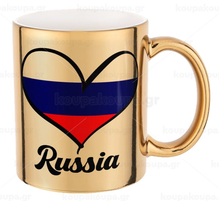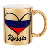 Russia flag, Mug ceramic, gold mirror, 330ml