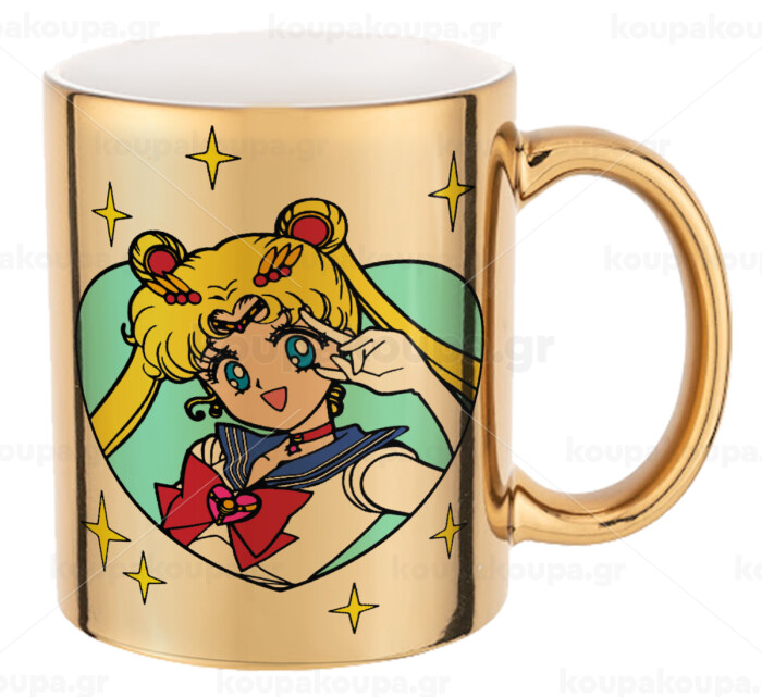 Sailor Moon star, Mug ceramic, gold mirror, 330ml