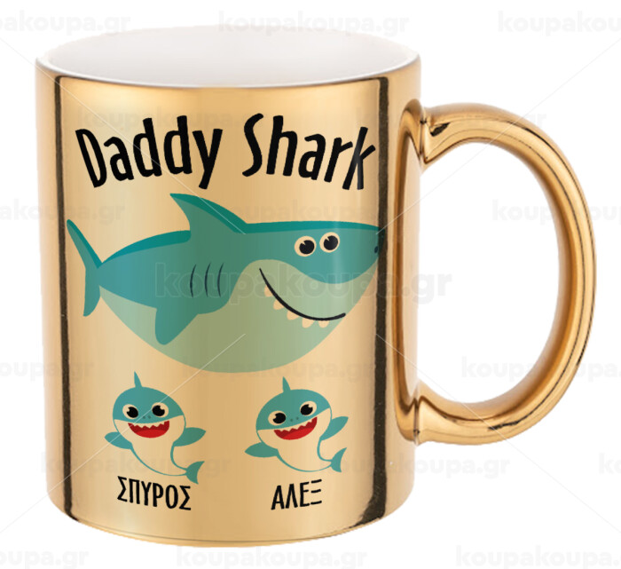 Daddy Shark (με ονόματα παιδικά), Mug ceramic, gold mirror, 330ml