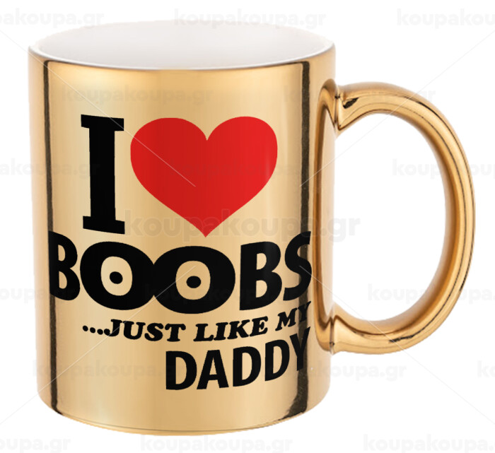 I Love boobs ...just like my daddy, Mug ceramic, gold mirror, 330ml