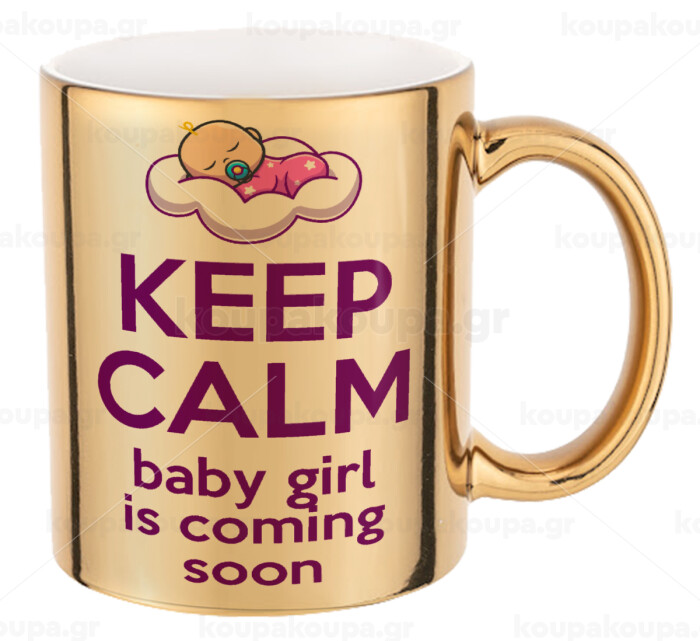 KEEP CALM baby girl is coming soon!!!, Mug ceramic, gold mirror, 330ml
