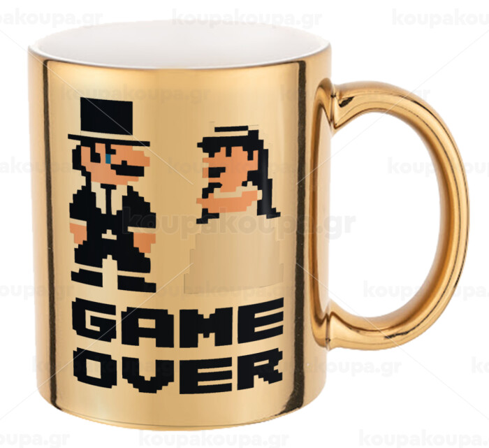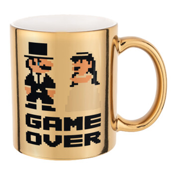 8bit Game Over Couple Wedding, Mug ceramic, gold mirror, 330ml