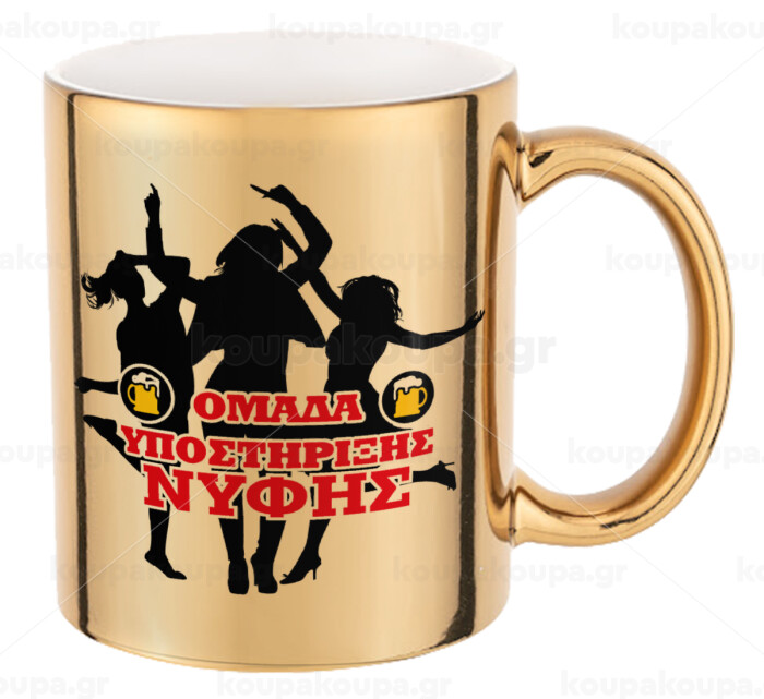 Bachelor Ομάδα υποστήριξης Νύφης, Mug ceramic, gold mirror, 330ml