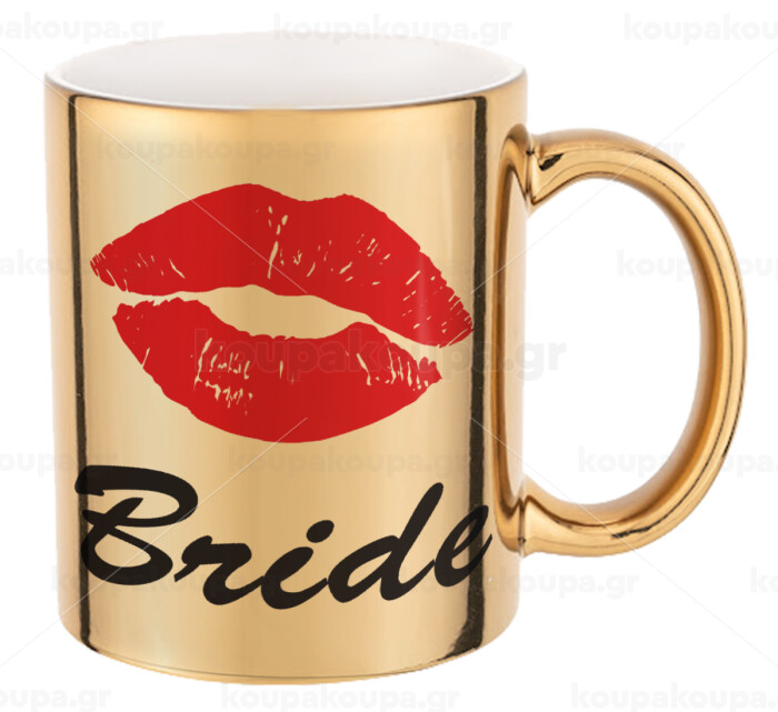 Bride kiss, Mug ceramic, gold mirror, 330ml