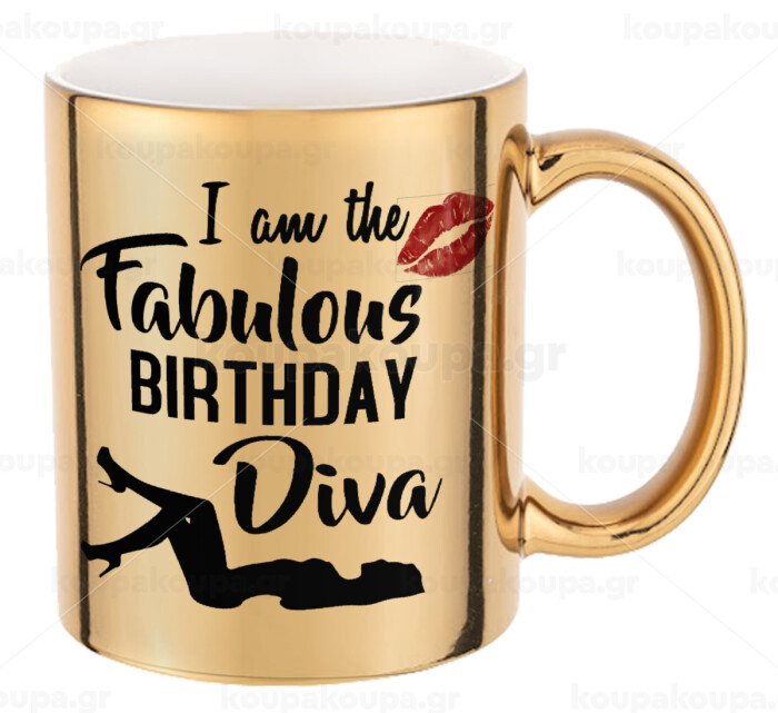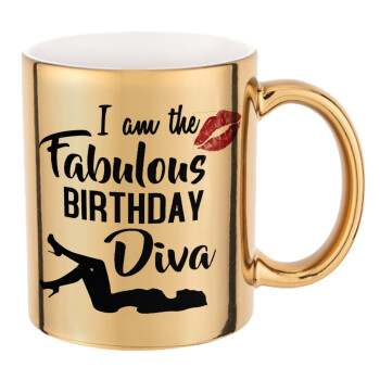 I am the fabulous Birthday Diva, Mug ceramic, gold mirror, 330ml