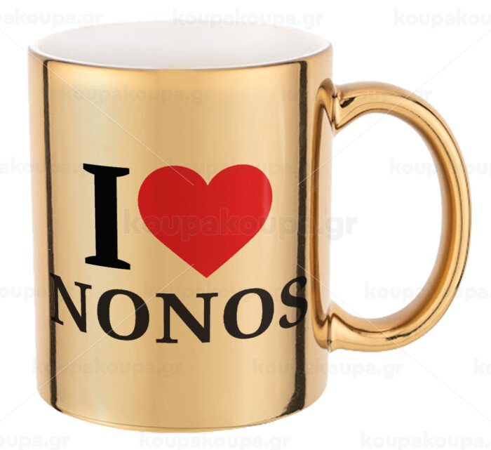 I Love ΝΟΝΟΣ, Mug ceramic, gold mirror, 330ml