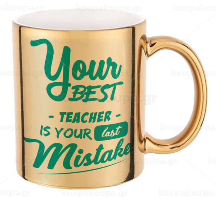 Your best teacher is your last mistake, Mug ceramic, gold mirror, 330ml