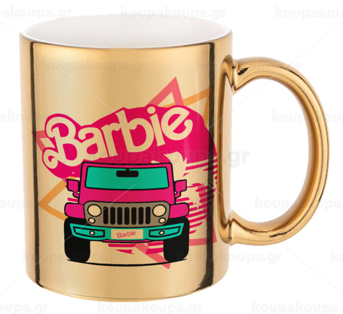 Barbie car, Mug ceramic, gold mirror, 330ml
