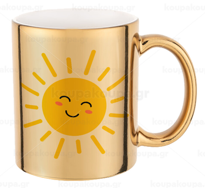 Happy sun, Mug ceramic, gold mirror, 330ml
