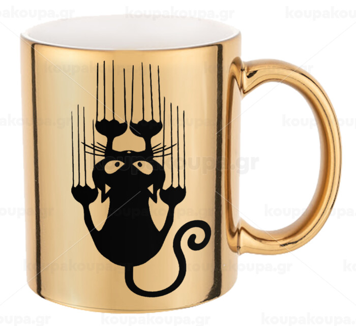 Cat scratching, Mug ceramic, gold mirror, 330ml