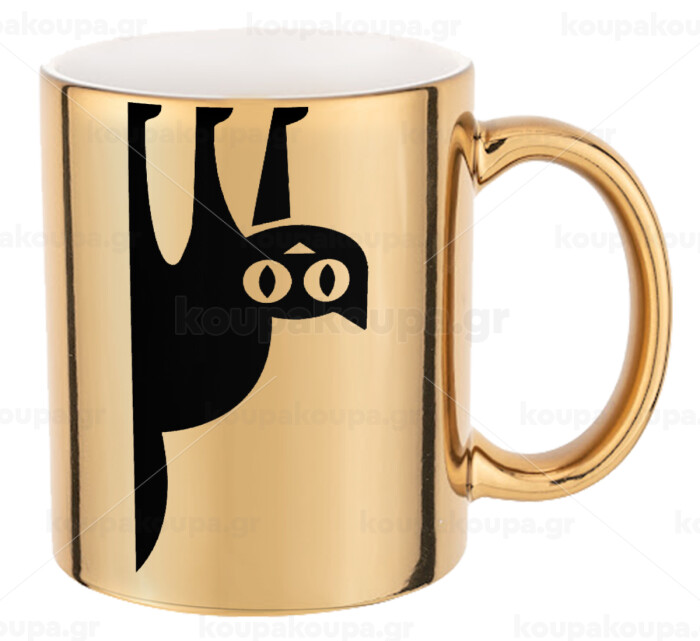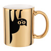 Cat upside down, Mug ceramic, gold mirror, 330ml