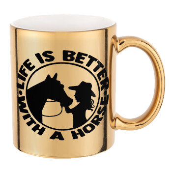 Life is Better with a Horse, Mug ceramic, gold mirror, 330ml