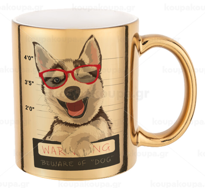 Warning, beware of Dog, Mug ceramic, gold mirror, 330ml