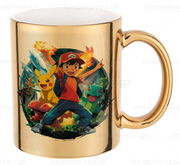 Ash Ketchum & Pikachu, Mug ceramic, gold mirror, 330ml