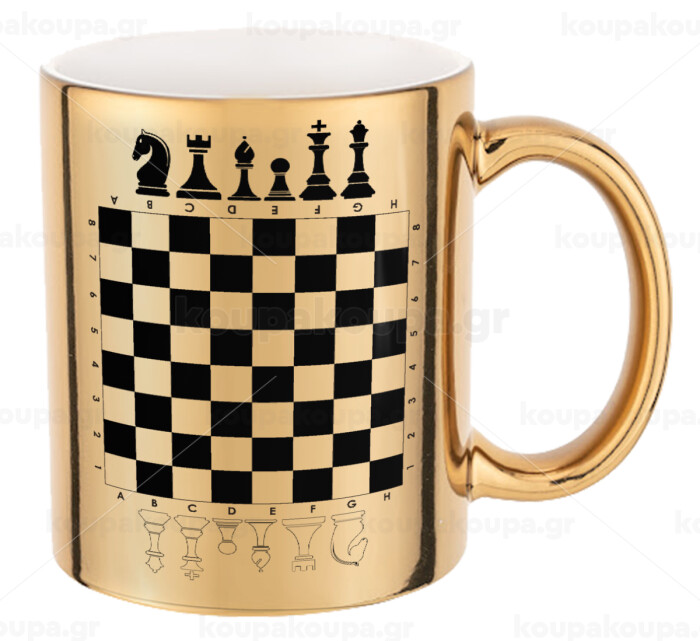 Chess, Mug ceramic, gold mirror, 330ml