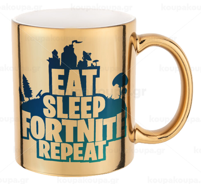 Eat Sleep Fortnite Repeat, Mug ceramic, gold mirror, 330ml