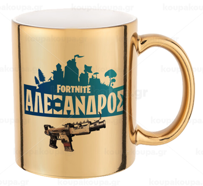 Fortnite with gun με το όνομα σου, Mug ceramic, gold mirror, 330ml