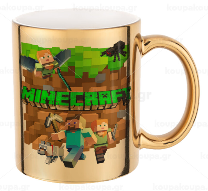 Minecraft characters, Mug ceramic, gold mirror, 330ml