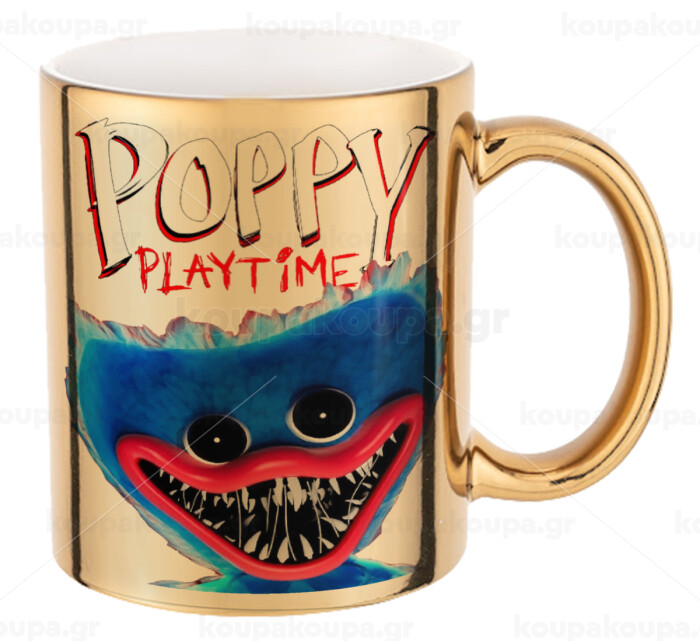 Poppy Playtime Huggy wuggy, Mug ceramic, gold mirror, 330ml
