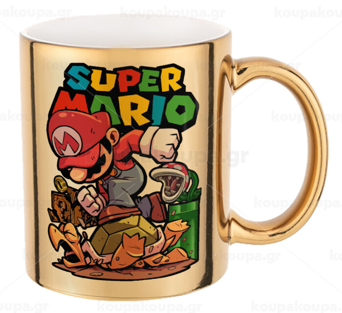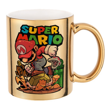 Super mario Jump, Mug ceramic, gold mirror, 330ml