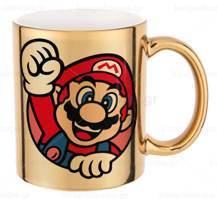 Super mario win, Mug ceramic, gold mirror, 330ml