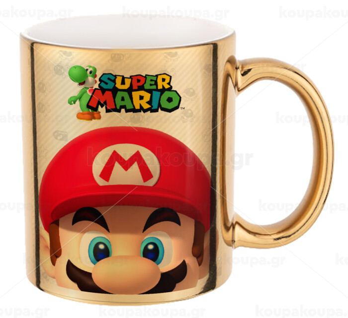 Super mario, Mug ceramic, gold mirror, 330ml