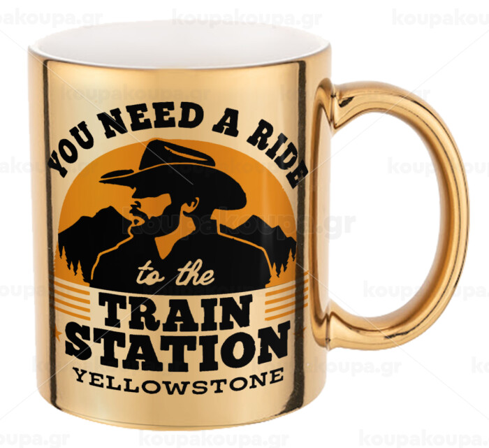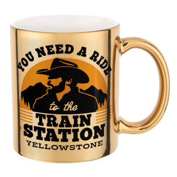 You need a ride to the train station, Mug ceramic, gold mirror, 330ml