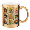 Labubu characters, Mug ceramic, gold mirror, 330ml