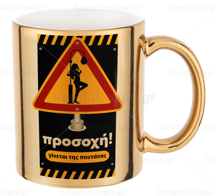 Προσοχή Γίνεται της πουτ.νας, Mug ceramic, gold mirror, 330ml