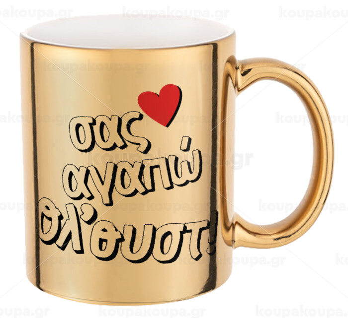 Σας αγαπώ όλ'ουστ!, Mug ceramic, gold mirror, 330ml