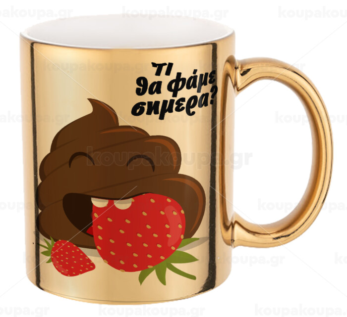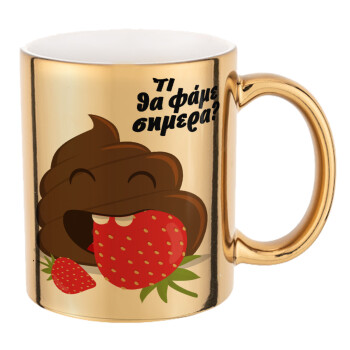 Τι θα φάμε σημερα???, Mug ceramic, gold mirror, 330ml