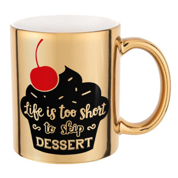 Life is too short, to skip Dessert, Mug ceramic, gold mirror, 330ml