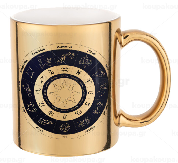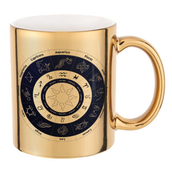 Ζωδιακός κύκλος, Mug ceramic, gold mirror, 330ml