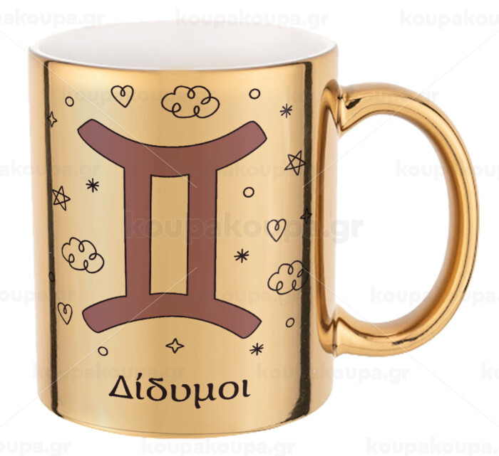 Ζώδια Δίδυμοι, Mug ceramic, gold mirror, 330ml