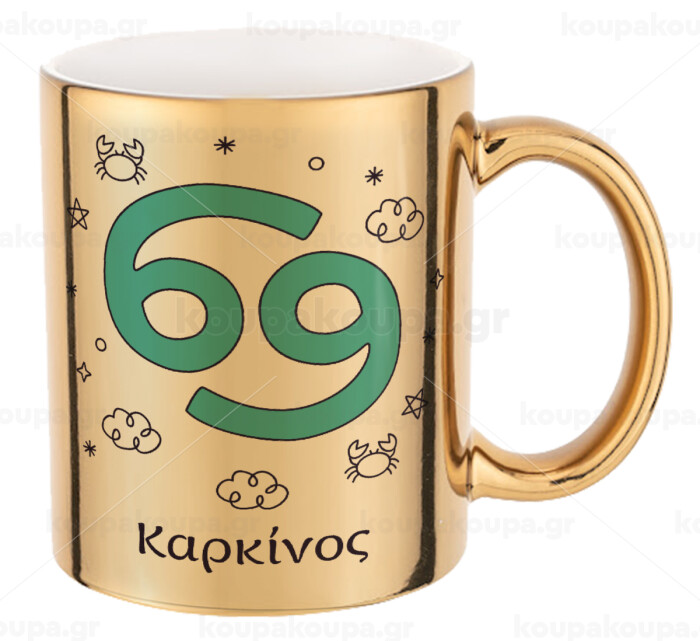 Ζώδια Καρκίνος, Mug ceramic, gold mirror, 330ml