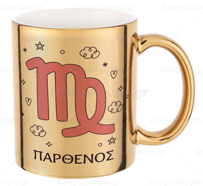Ζώδια Παρθένος, Mug ceramic, gold mirror, 330ml