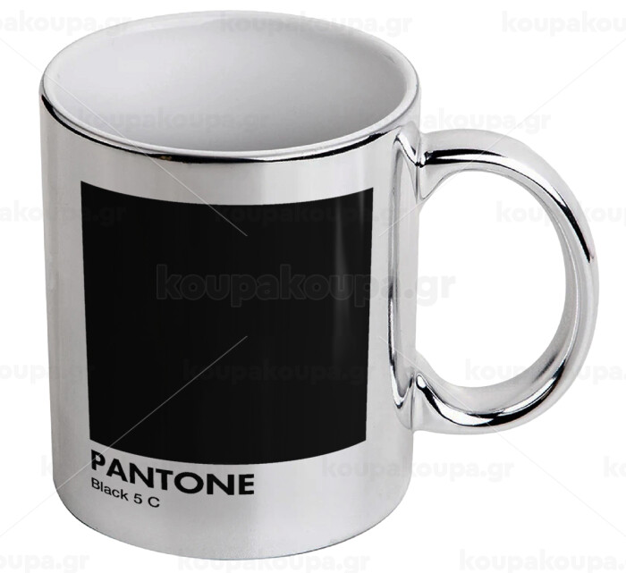 Pantone Black, Mug ceramic, silver mirror, 330ml