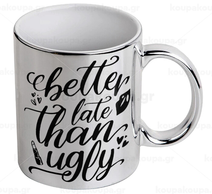 Better late than ugly, Mug ceramic, silver mirror, 330ml