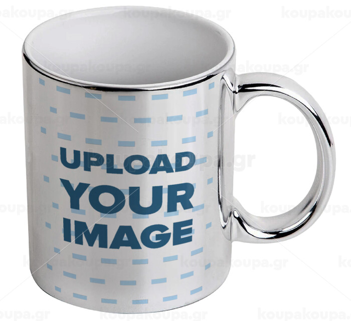 Upload your logo, Mug ceramic, silver mirror, 330ml