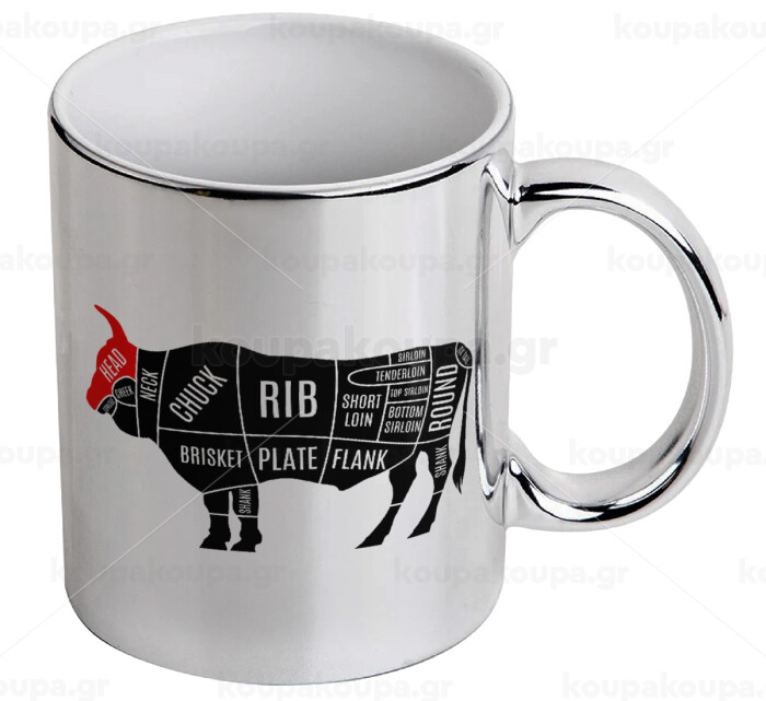 Diagrams for butcher shop, Mug ceramic, silver mirror, 330ml